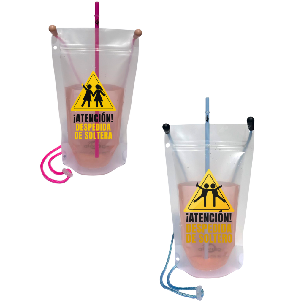 Diseño exclusivo para despedidas de soltero y soltera, con mensaje de advertencia incluido 🔥. Perfecto para hacer grupo, sacar fotones y moverse sin derramar ni una gota.